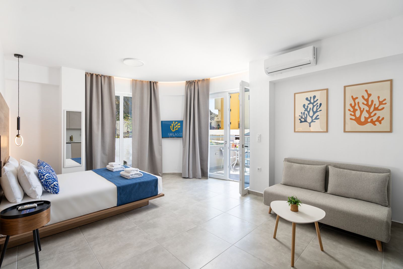 PSAROXARAKO — 4 επισκέπτες 33 τ.μ. 1 διπλό κρεβάτι / 1 καναπές κρεβάτι ΠΑΡΟΧΕΣ — Δίχωρο διαμέρισμα Πρόσβαση & προδιαγραφές για ΑΜΕΑ Θέα στο βουνό Ιδιωτική πλήρη κουζίνα με Φούρνο Ιδιωτικό μπάνιο Μπαλκόνι Τηλεόραση επίπεδης οθόνης Κλιματισμό Δωρεάν WiFi Κουζίνα Ψυγείο Ηλεκτρικός βραστήρας Κουζινικά σκεύη Εστίες Μπάνιο Προϊόντα περιποίησης Ντους Πετσέτες Στεγνωτήρας μαλλιών Χαρτί υγείας Κανονισμοί καταλύματος 1. Check-in, Από 3:00 μ.μ. έως 6:00 μ.μ. Θα πρέπει να ενημερώσετε το κατάλυμα εκ των προτέρων τι ώρα θα φτάσετε. 2. Check-out Από 8:00 π.μ. έως 11:00 π.μ. 3. Κανόνες Σπιτιού Απαγορεύεται το κάπνισμα στους εσωτερικούς χώρους Τα κατοικίδια δεν επιτρέπονται Δεν επιτρέπονται τα πάρτι ή/και οι εκδηλώσεις Εξασφαλίστε τη Διαμονή σας — Δείτε άμεσα τις διαθέσιμες ημερομηνίες και εξασφαλίστε τη διαμονή σας εύκολα και γρήγορα, στα Faflagos Apartments, μόλις λίγα βήματα από τη θάλασσα. KANTE ΚΡΑΤΗΣΗ